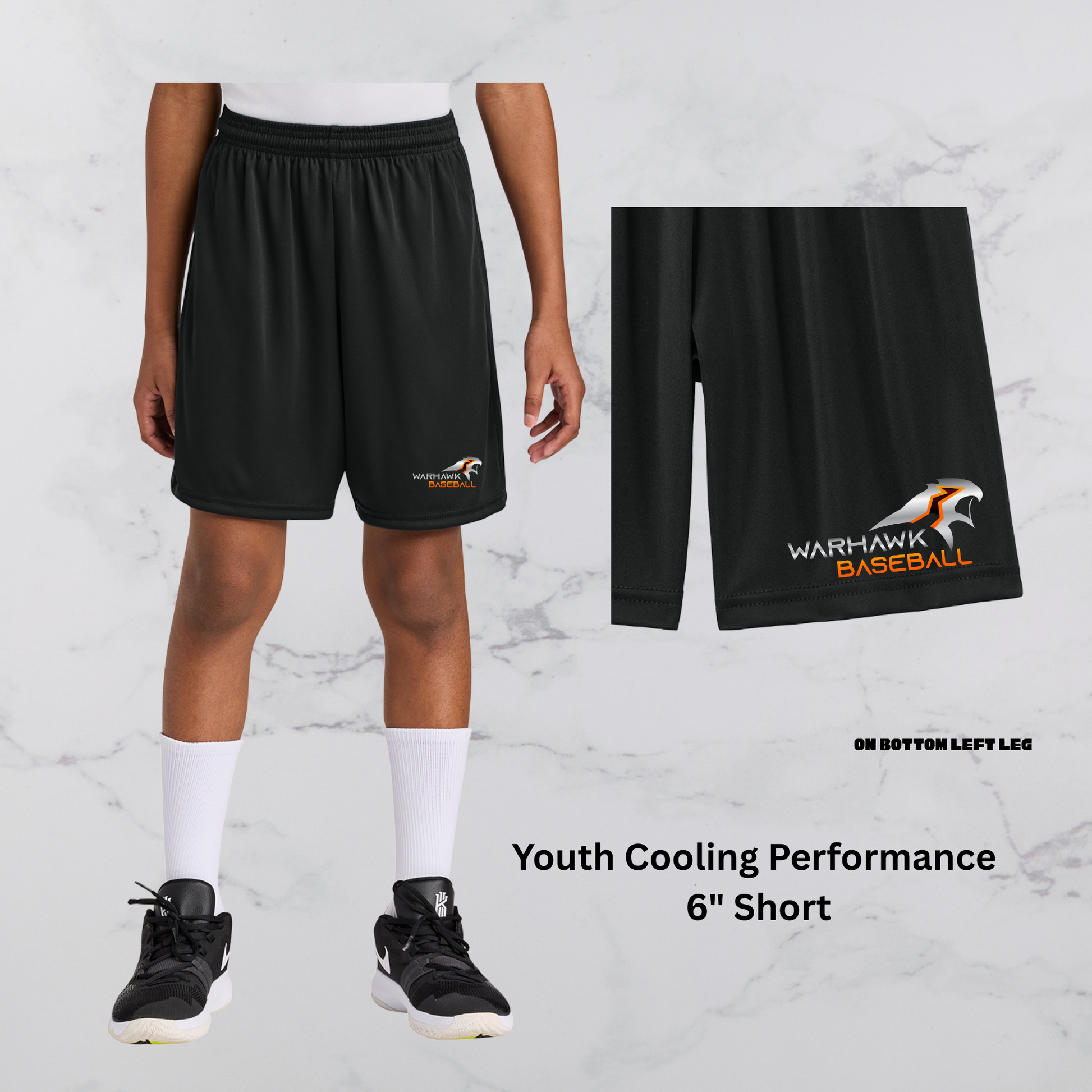 13) Youth Shorts - Logo only on left leg (Poly)